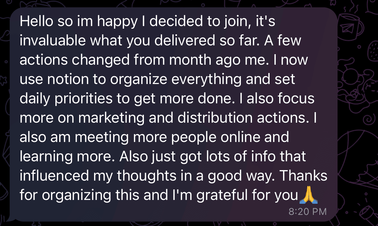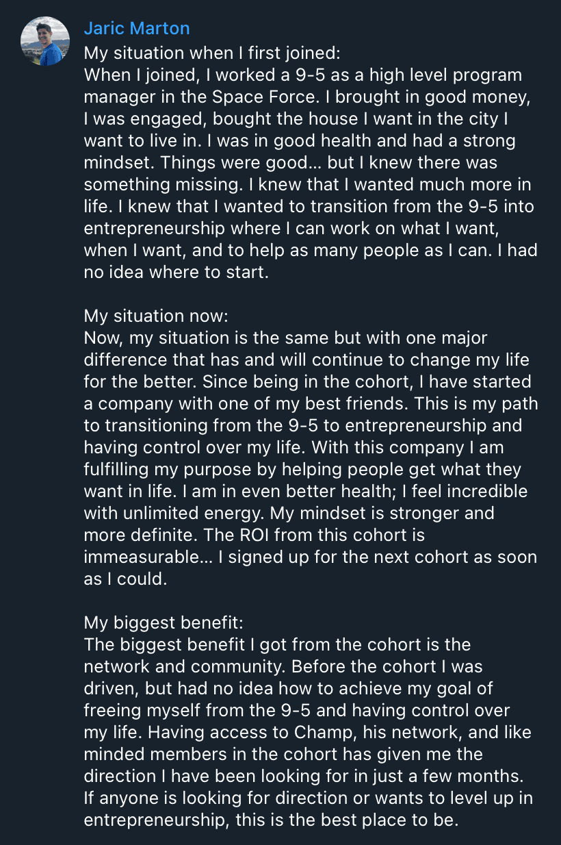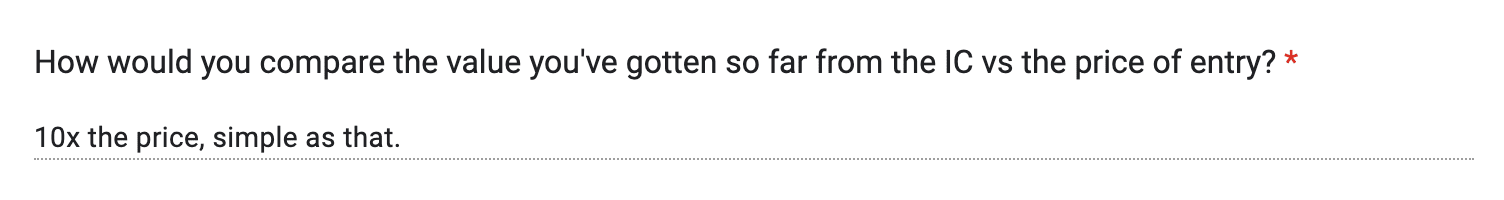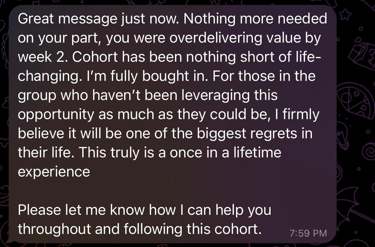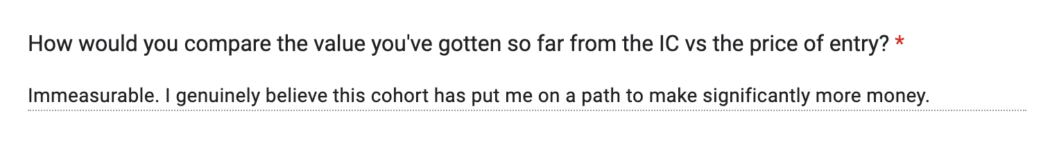 "100% overdelivered. Way more value than I expected and it kept on getting better."