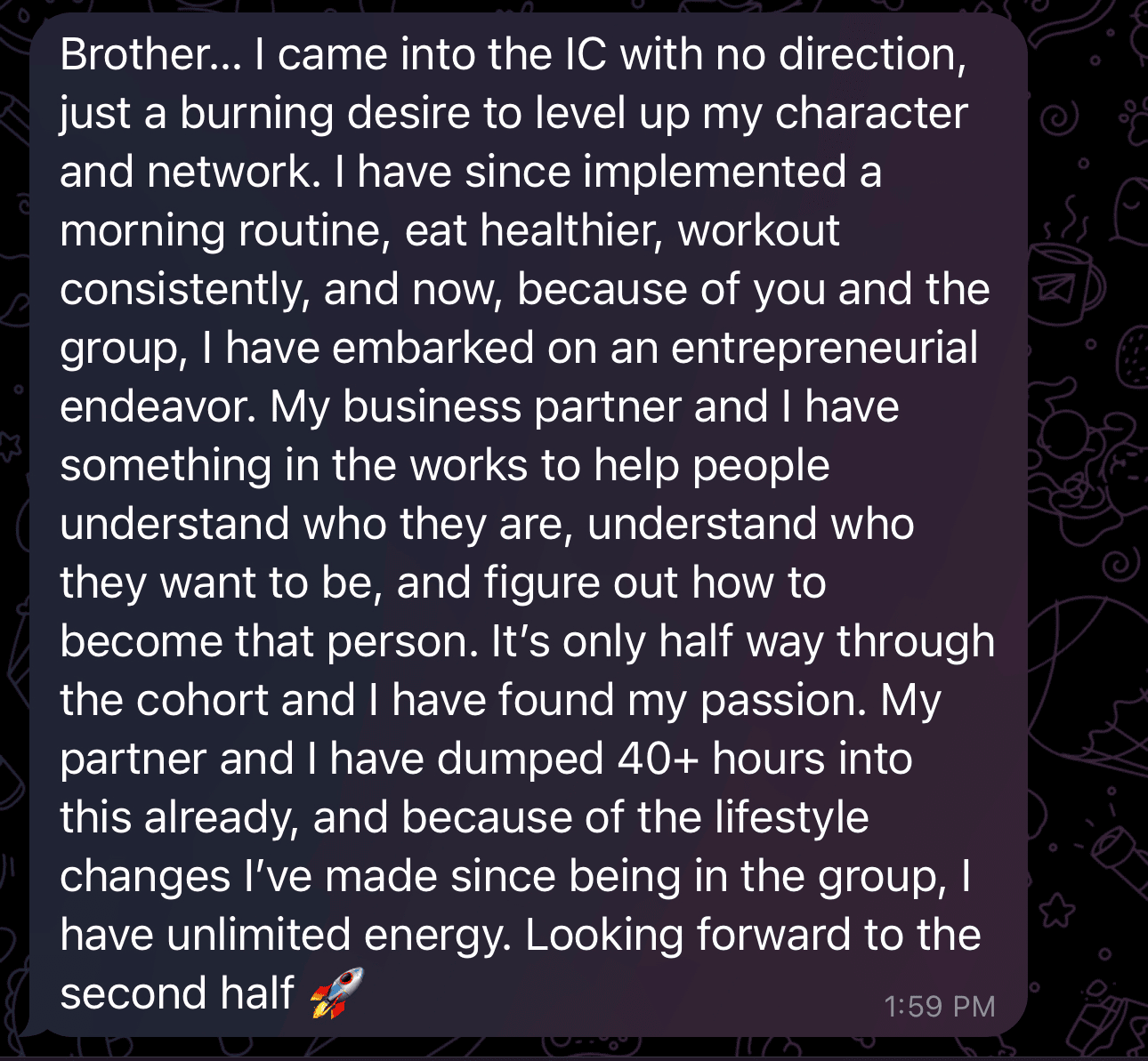 After 48 hours, I’ll increase the price incrementally for every 10 people that join... or I may just CLOSE IT. If you want to be an early adopter and start ACTUALLY making progress and start living the way you deserve to, you know what to do.