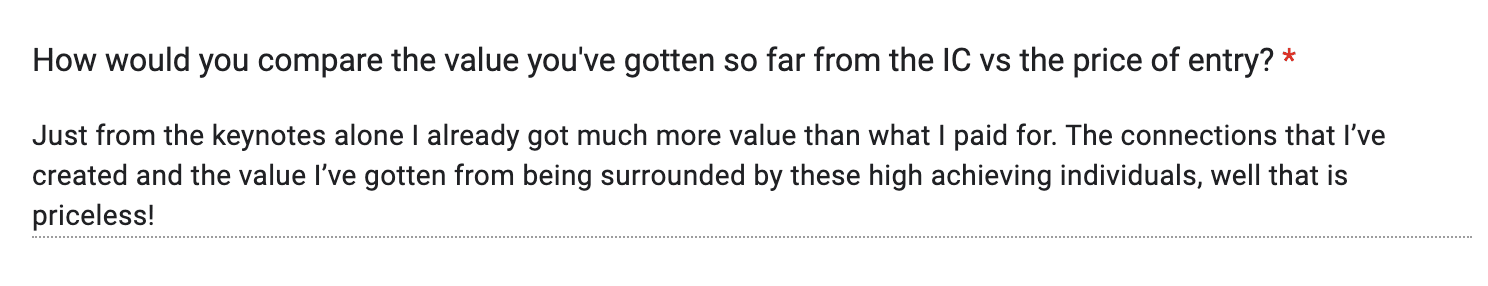 "The speakers alone made it 10x the money I paid for the course itself."